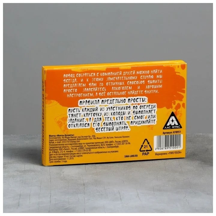 Купить игра для компании "фанты буханты" 20 карт от 100 руб. с доставкой до пункта выдачи в Верещагино. Интернет магазин ДекаМаркет. Оплата при получении.
